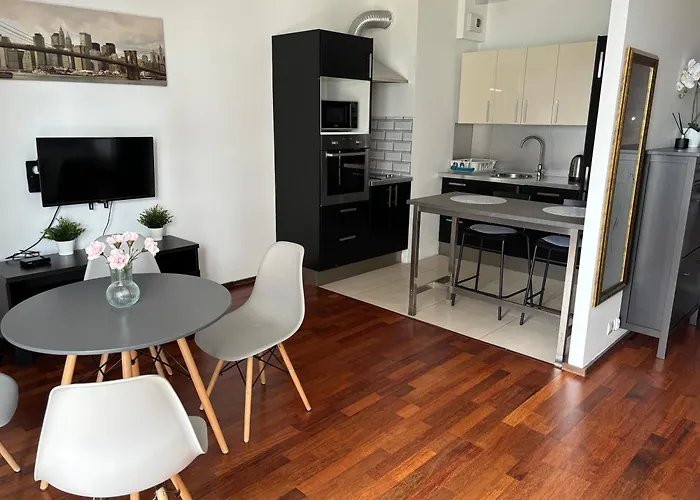 Además, dispone de nevera, un horno y utensilios de cocina. Los restaurantes U Skrzypka y la Gruba Ryba se encuentran a 15 minutos. El aeropuerto Gdańsk-Lech Wałęsa está a 24 minutos en coche, y la parada de autobús Przymorze Wielkie, no muy lejos de este alojamiento.